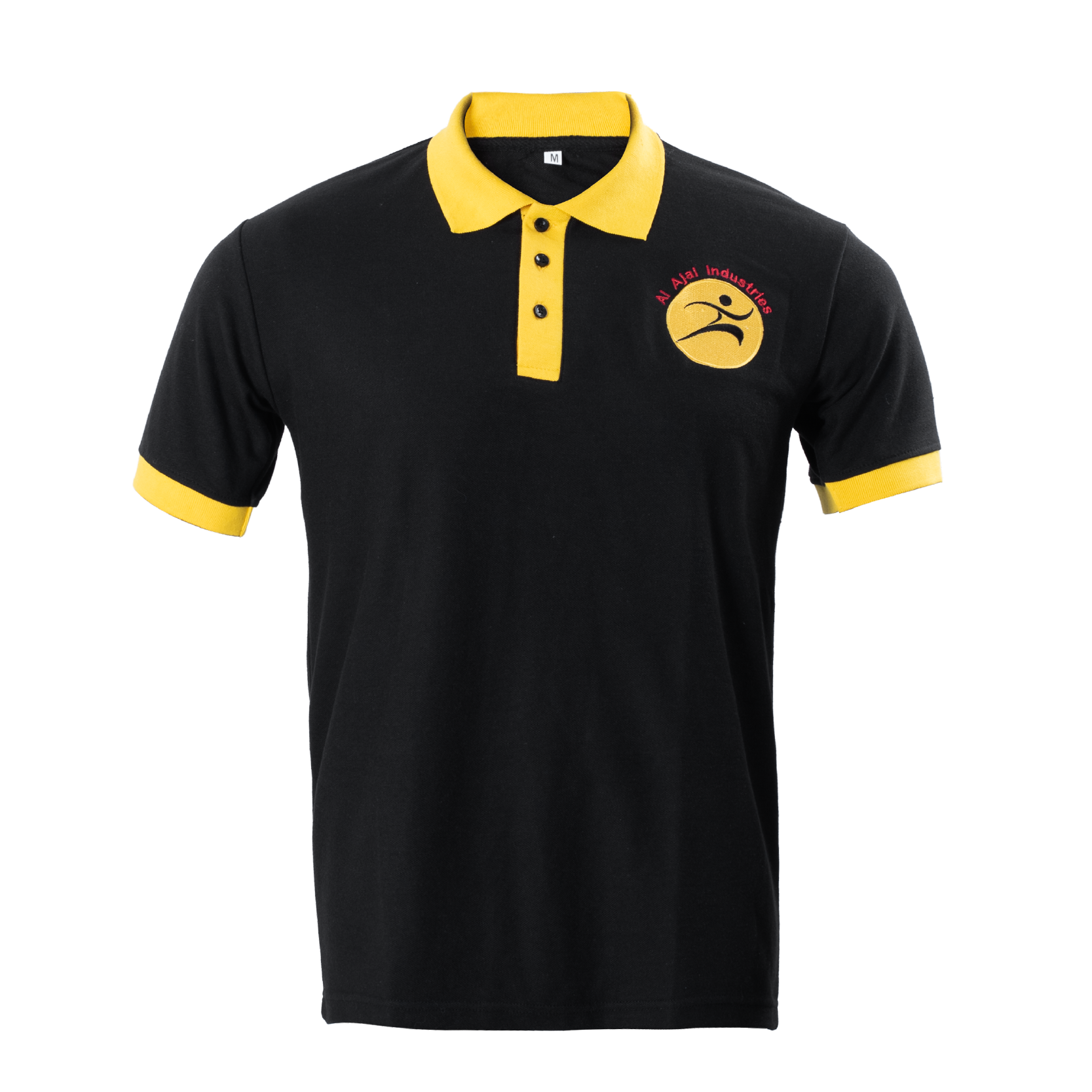 The polo features a classic black body accented with a contrasting yellow collar and sleeve hem, delivering a sharp, modern look that enhances brand visibility and uniform consistency. Finished with a premium 3D embroidered logo, it provides a high-end, professional feel suitable for both formal and active environments.